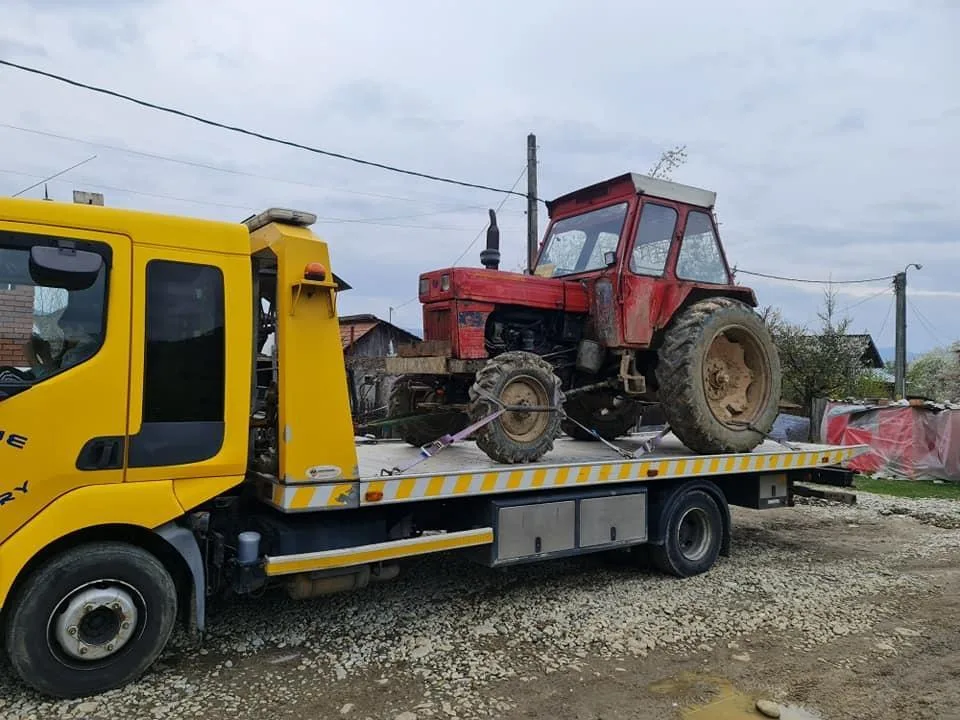 Detinem autospeciala moderna Renault echipata corespunzator cu care intervenim pentru transportul autoturismelor si utilajelor agricole: rulote, jeep-uri, microbuze, dube, materiale constructii, cultivatoare, pluguri, semanatori, autoutilitare, tractoare, utilaje industriale si constructii motostivuitoare, minibuldozere, compactoare, miniexcavatoare, remorci agricole etc.